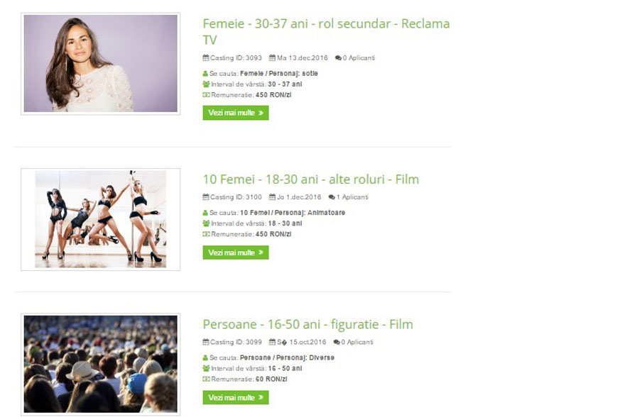 Actorii sunt ținuti la curent cu majoritatea anunțurilor de casting existente pe piață și pot aplica ușor la cele de care sunt interesați.